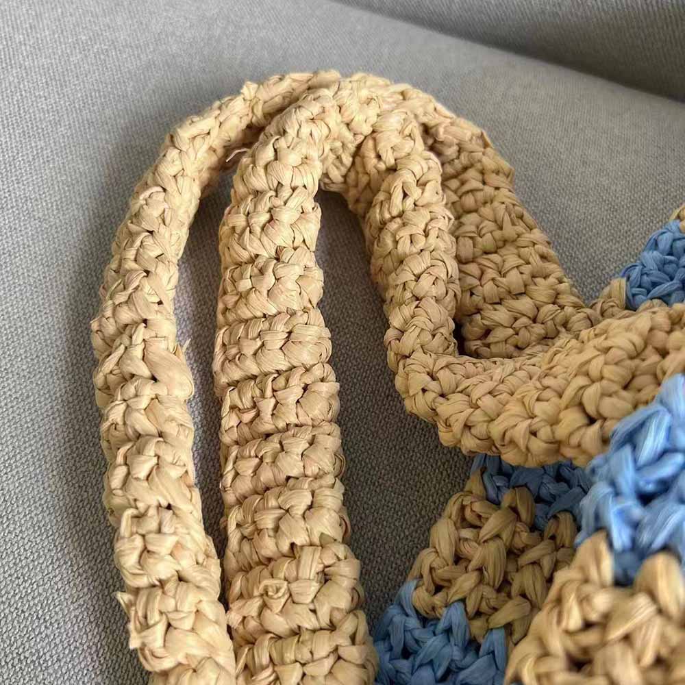 Home Bags & Luggage Handbags Prada Imitation Women Large Raffia Tote Bag with Embroidered Lettering Logo on the Front-Blue