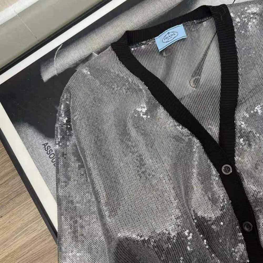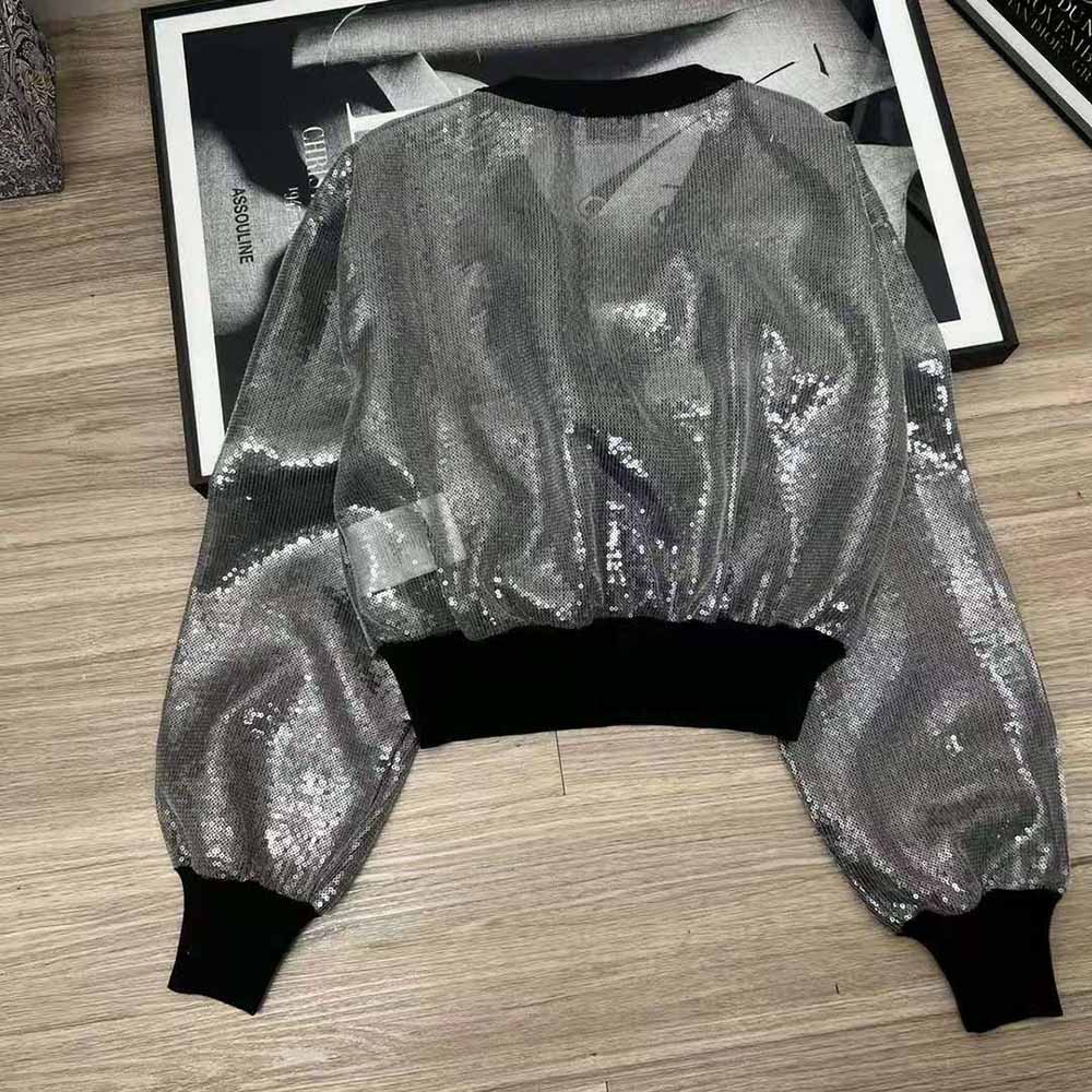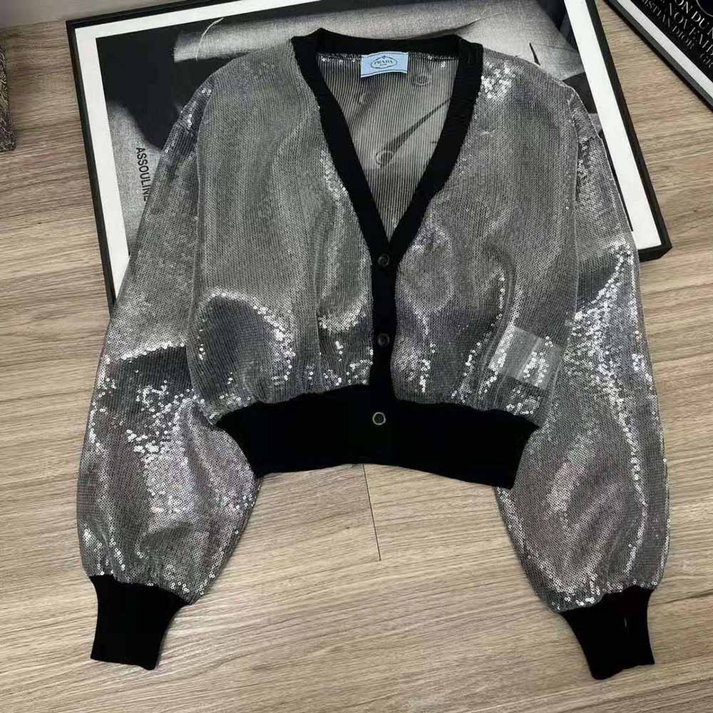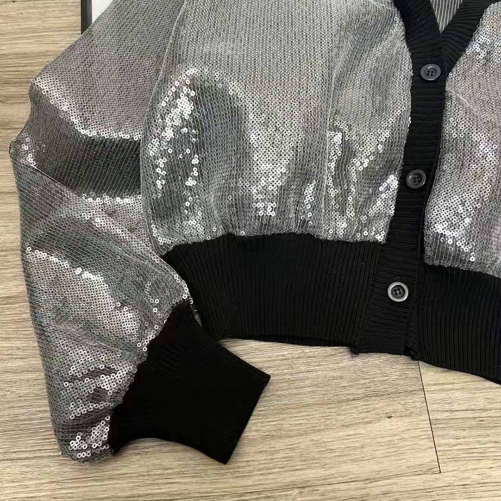 - This V-neck crop top is enhanced by the luxurious all-over sequin embellishment.
