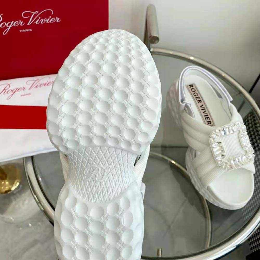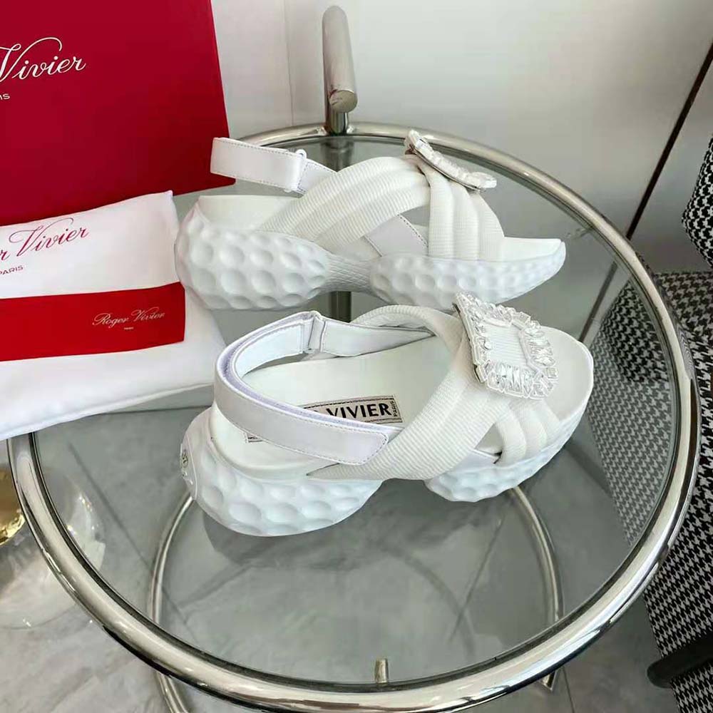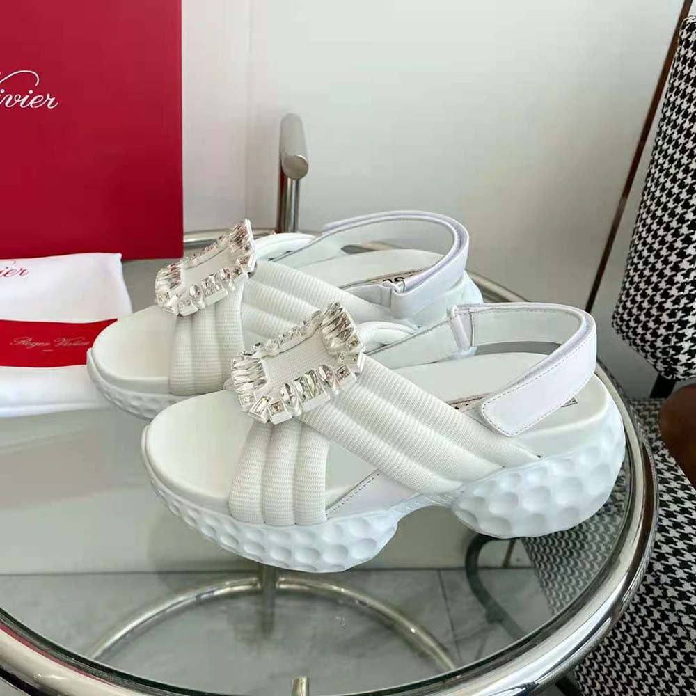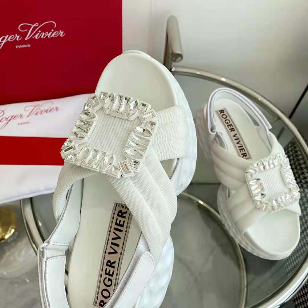 Home Shoes Sandal Roger Vivier Women Viv’ Run Light Strass Buckle Sandals AAA-grade Replica in Fabric-White