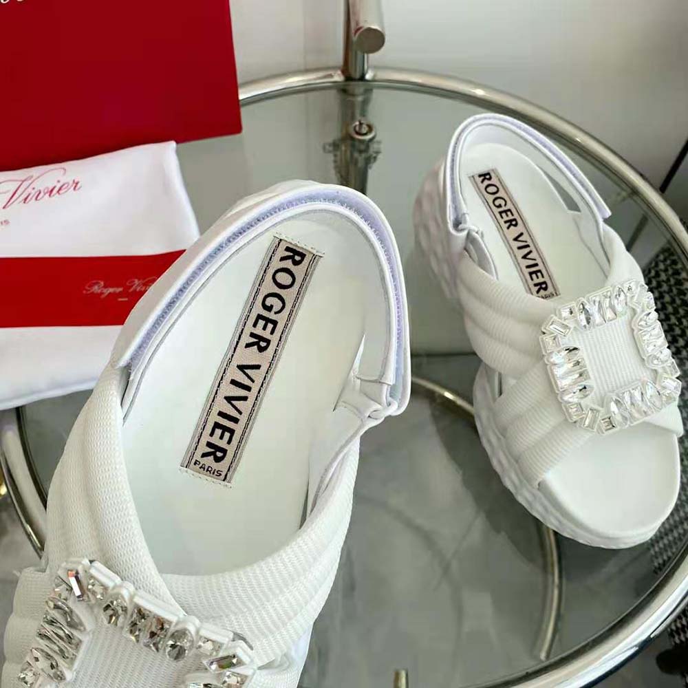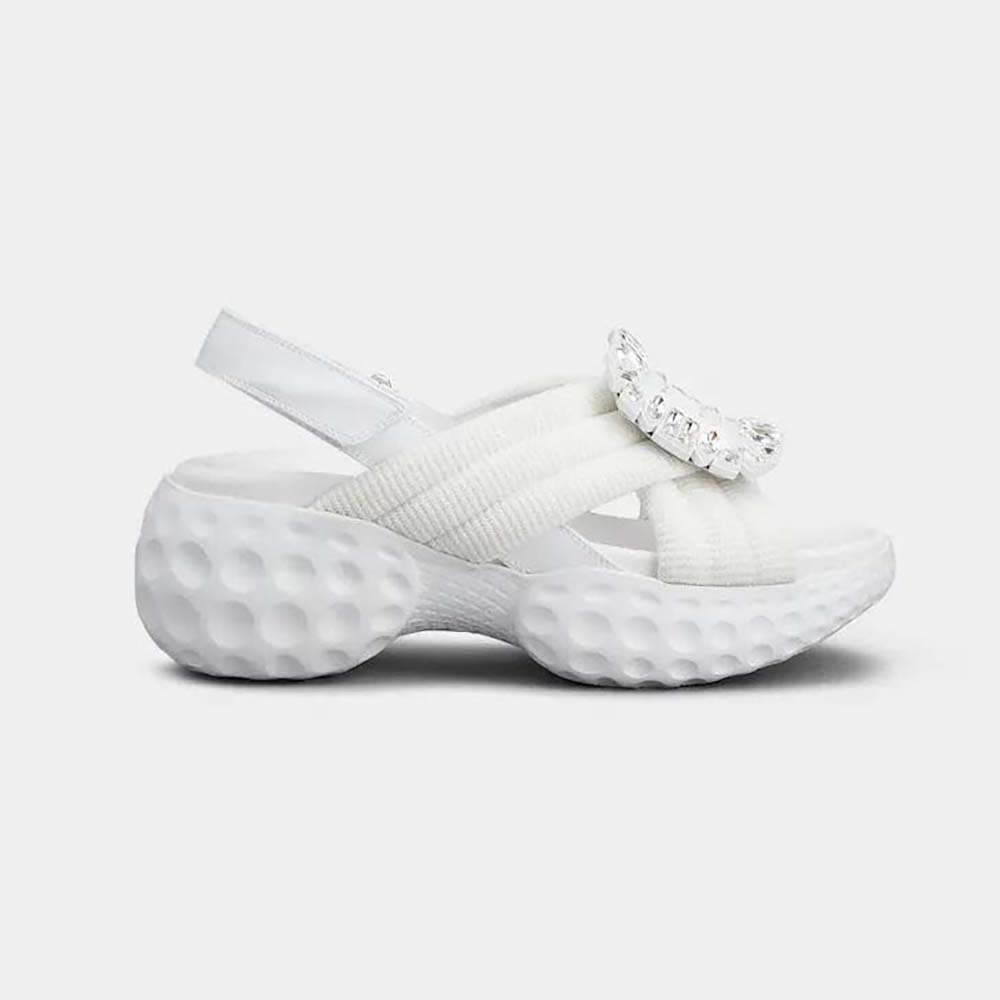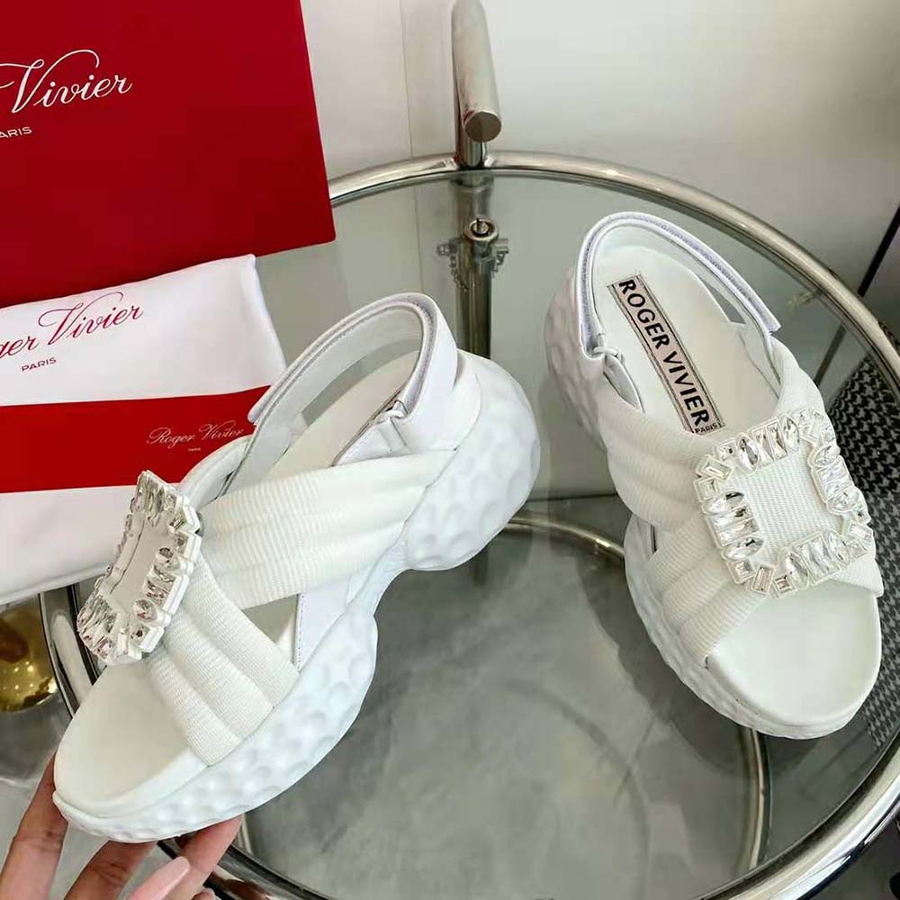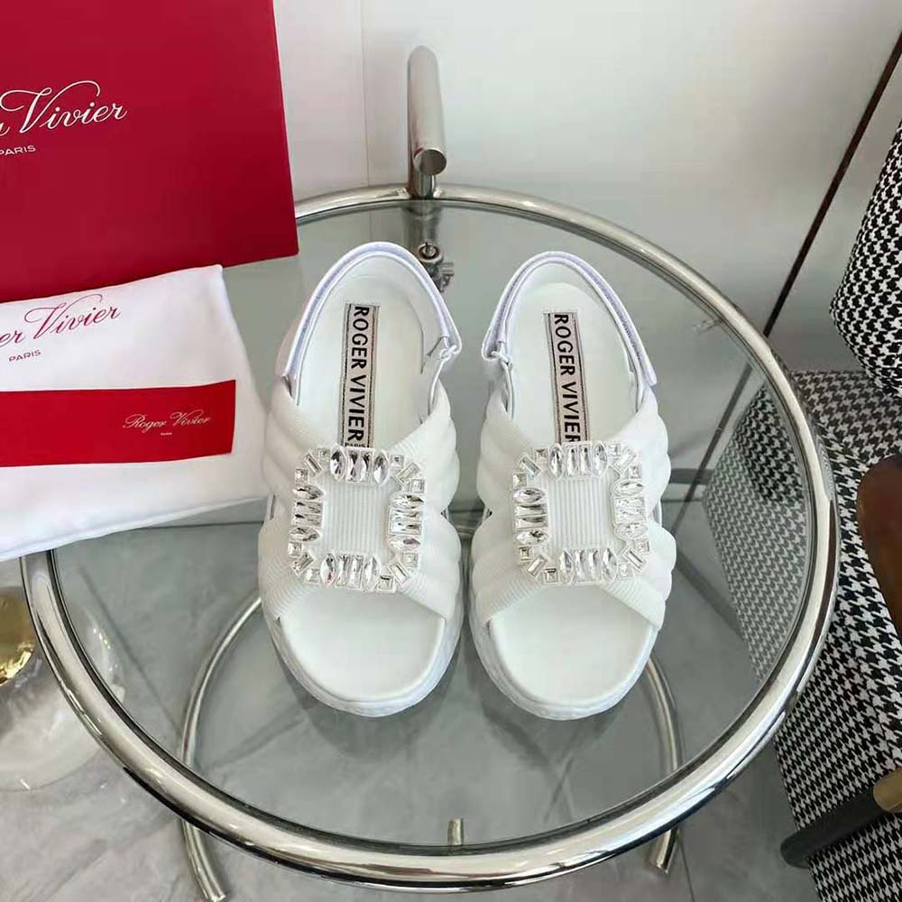 Home Shoes Sandal Roger Vivier Women Viv’ Run Light Strass Buckle Sandals AAA-grade Replica in Fabric-White