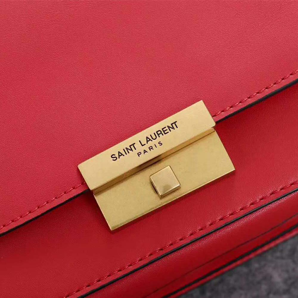 - Magnetized snap button closing under saint laurent paris-engraved metal plate