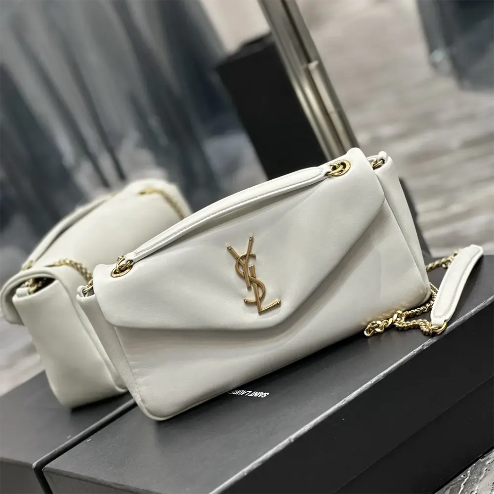 Home Bags & Luggage Shoulder Bags Imitation Saint Laurent YSL Women Calypso in Plunged Lambskin-White 734153AACQO9227
