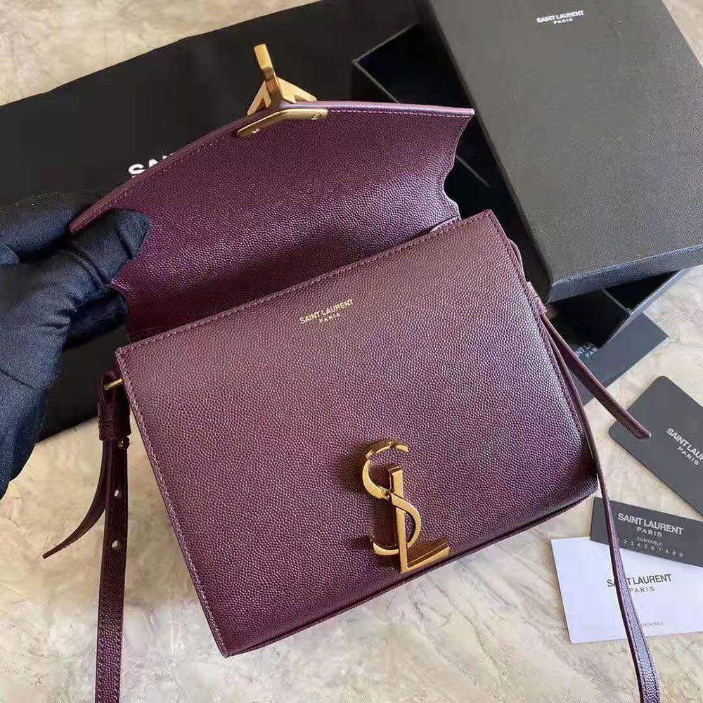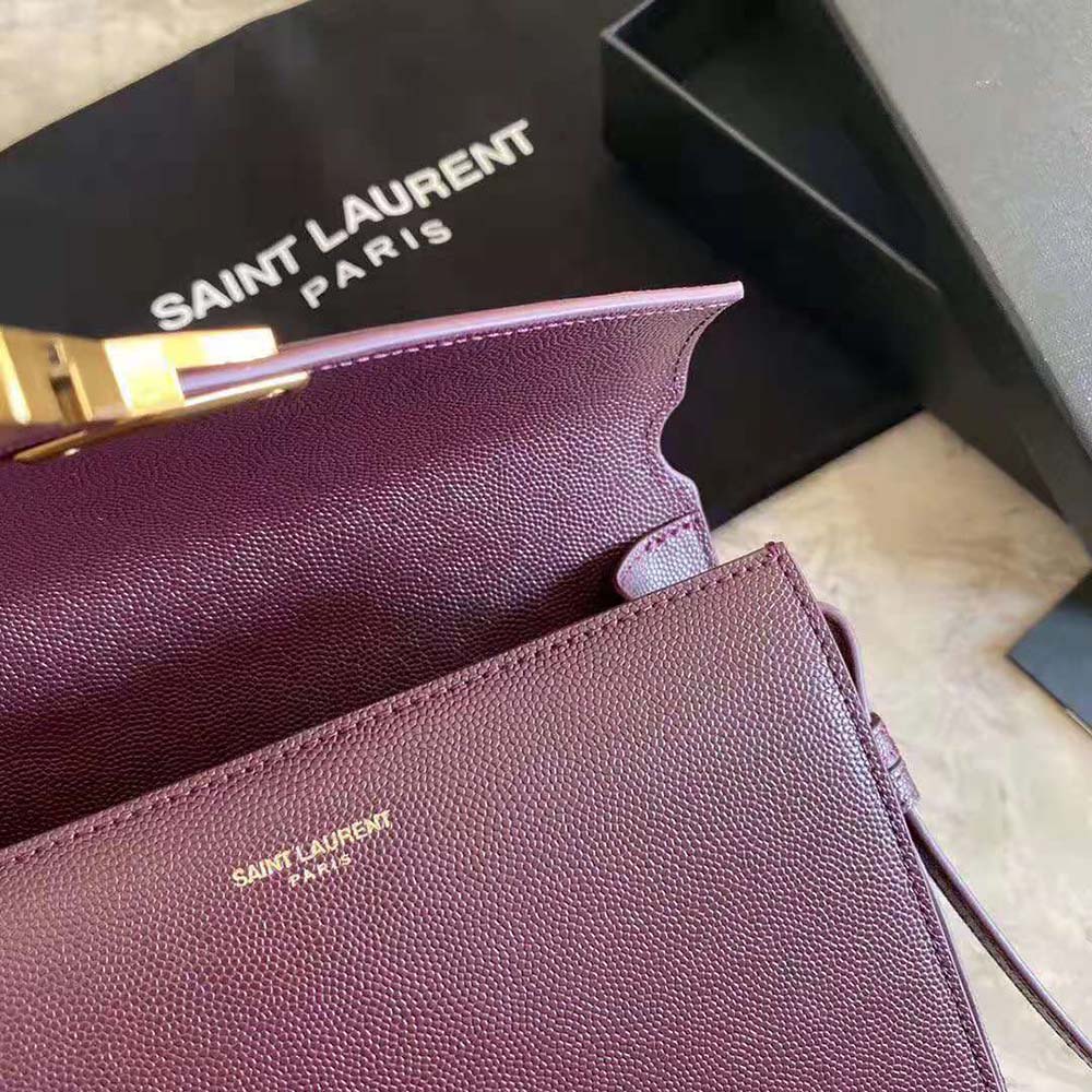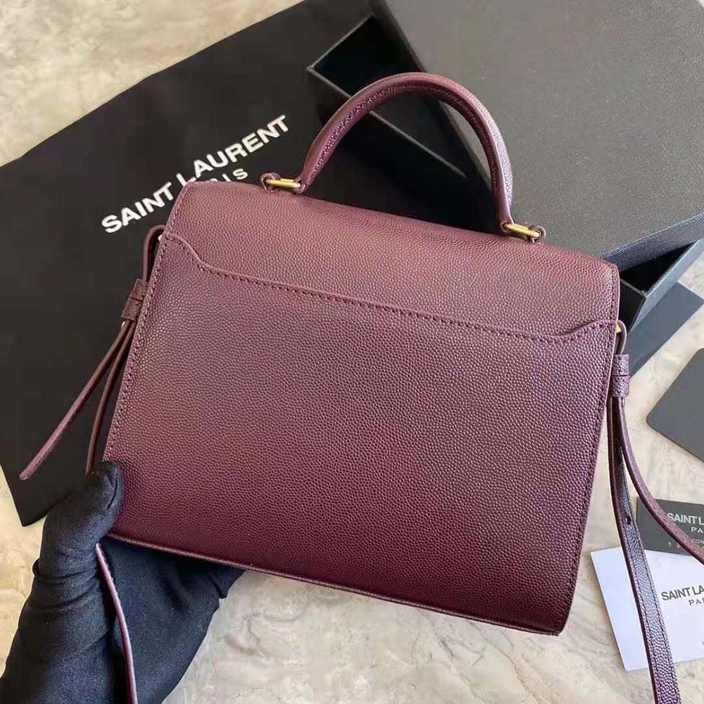 Saint Laurent YSL Women Cassandra Top Handle Medium Bag in Grain DE Poudre Embossed Leather-Maroon