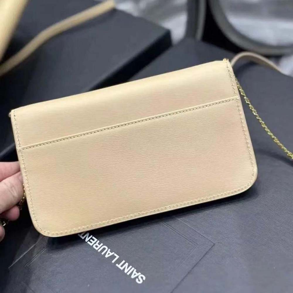 Saint Laurent YSL Women Cassandre Phone Holder in Smooth Leather-Sandy 6350950U40J2721