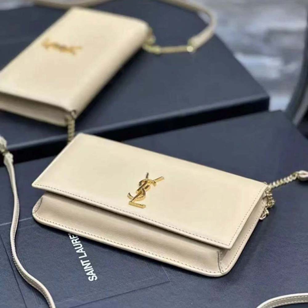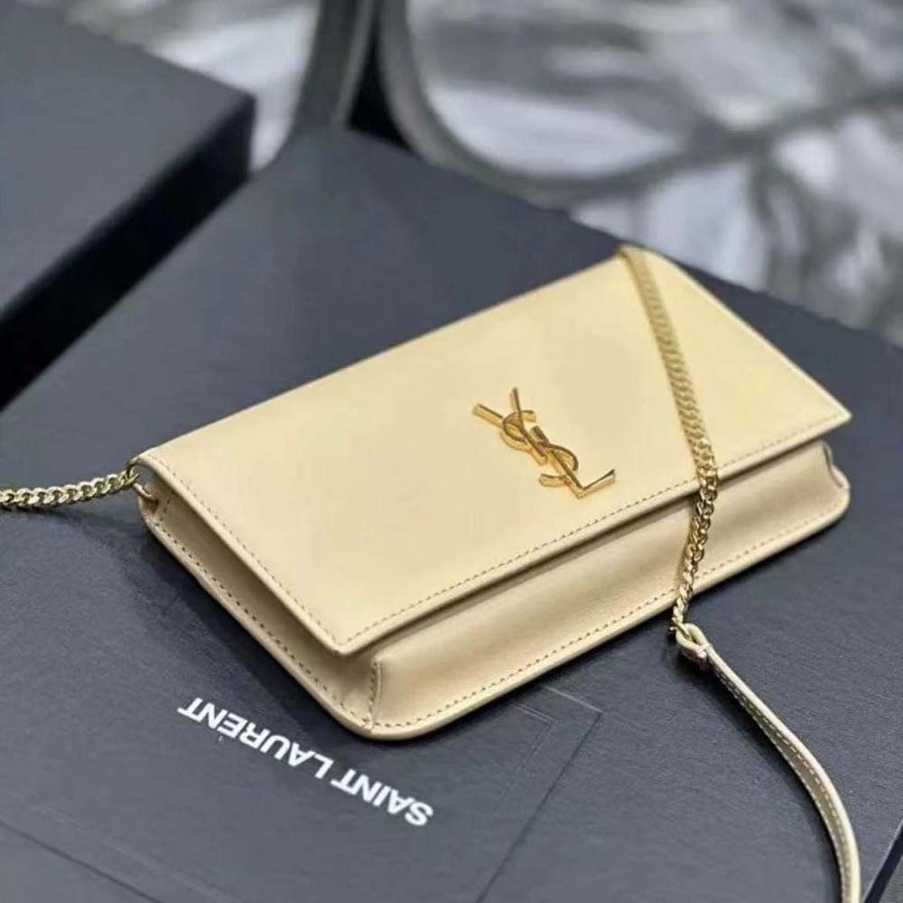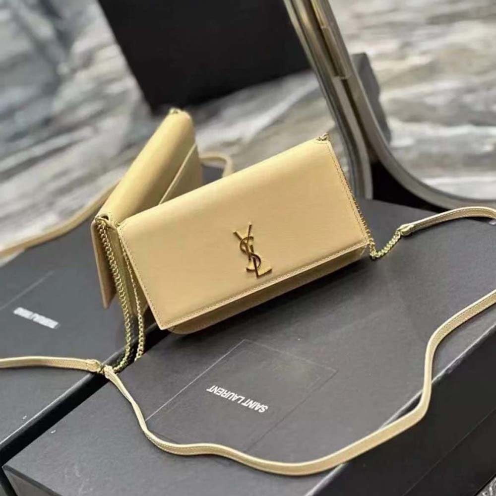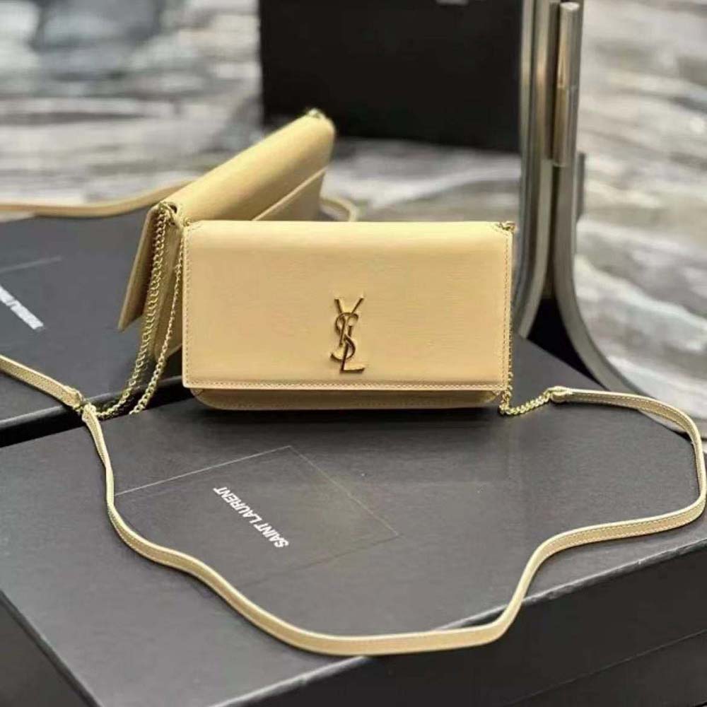 Home Bags & Luggage Shoulder Bags Saint Laurent YSL Women Cassandre Phone Holder in Smooth Leather-Sandy 6350950U40J2721