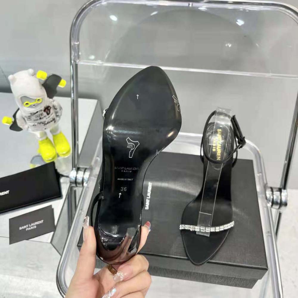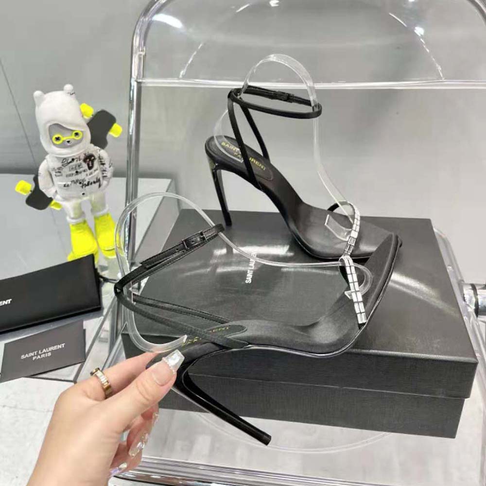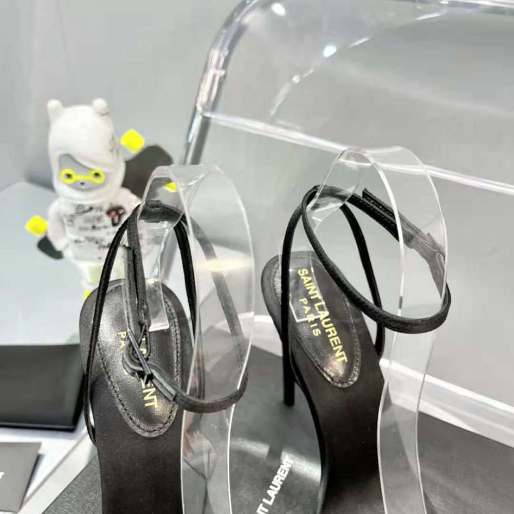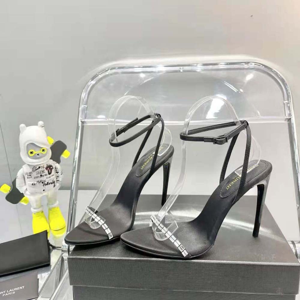 Home Shoes High Heels Luxury Dupe Saint Laurent YSL Women Gloria Sandals in Crepe Satin with Rhinestones