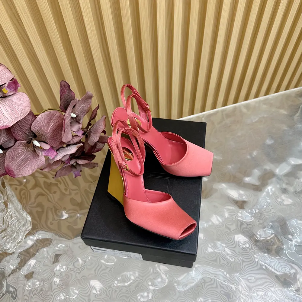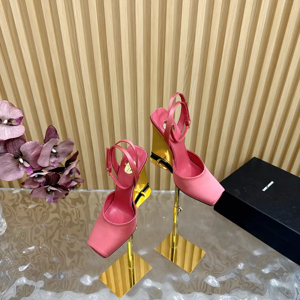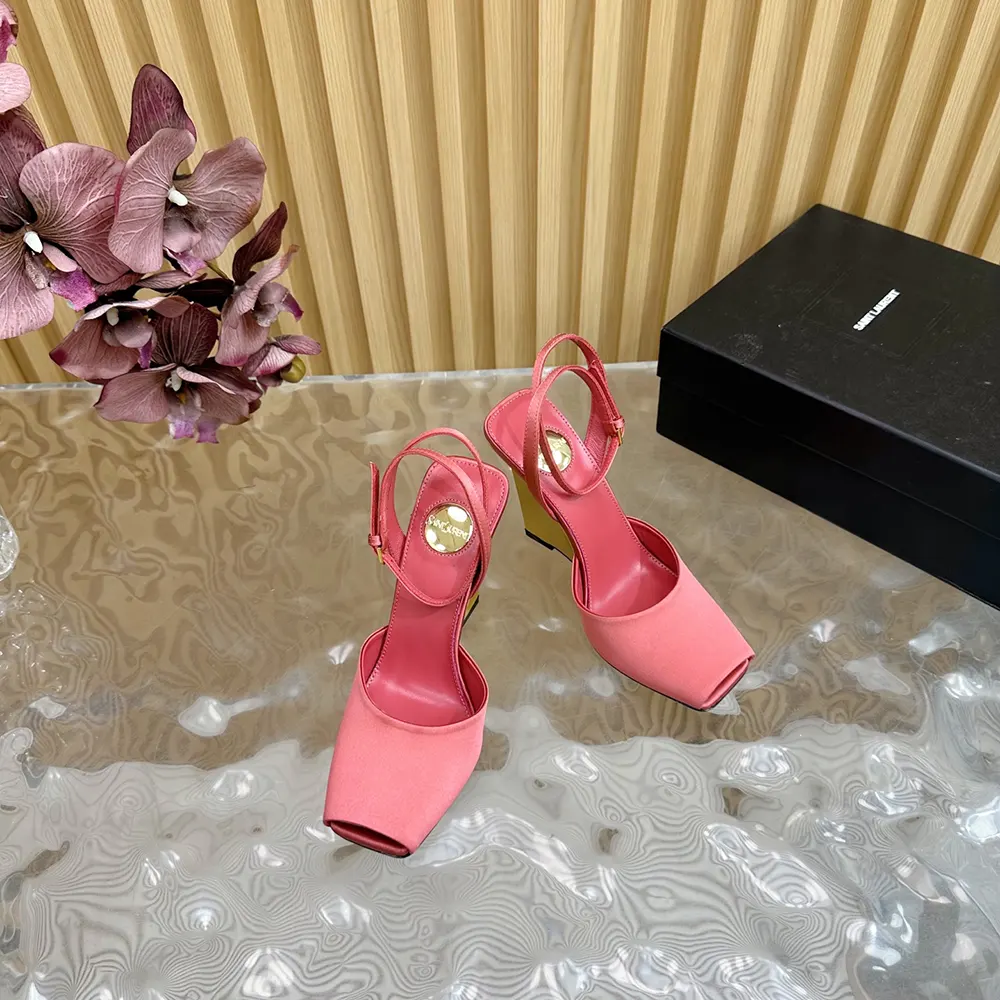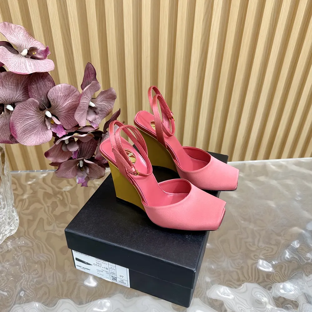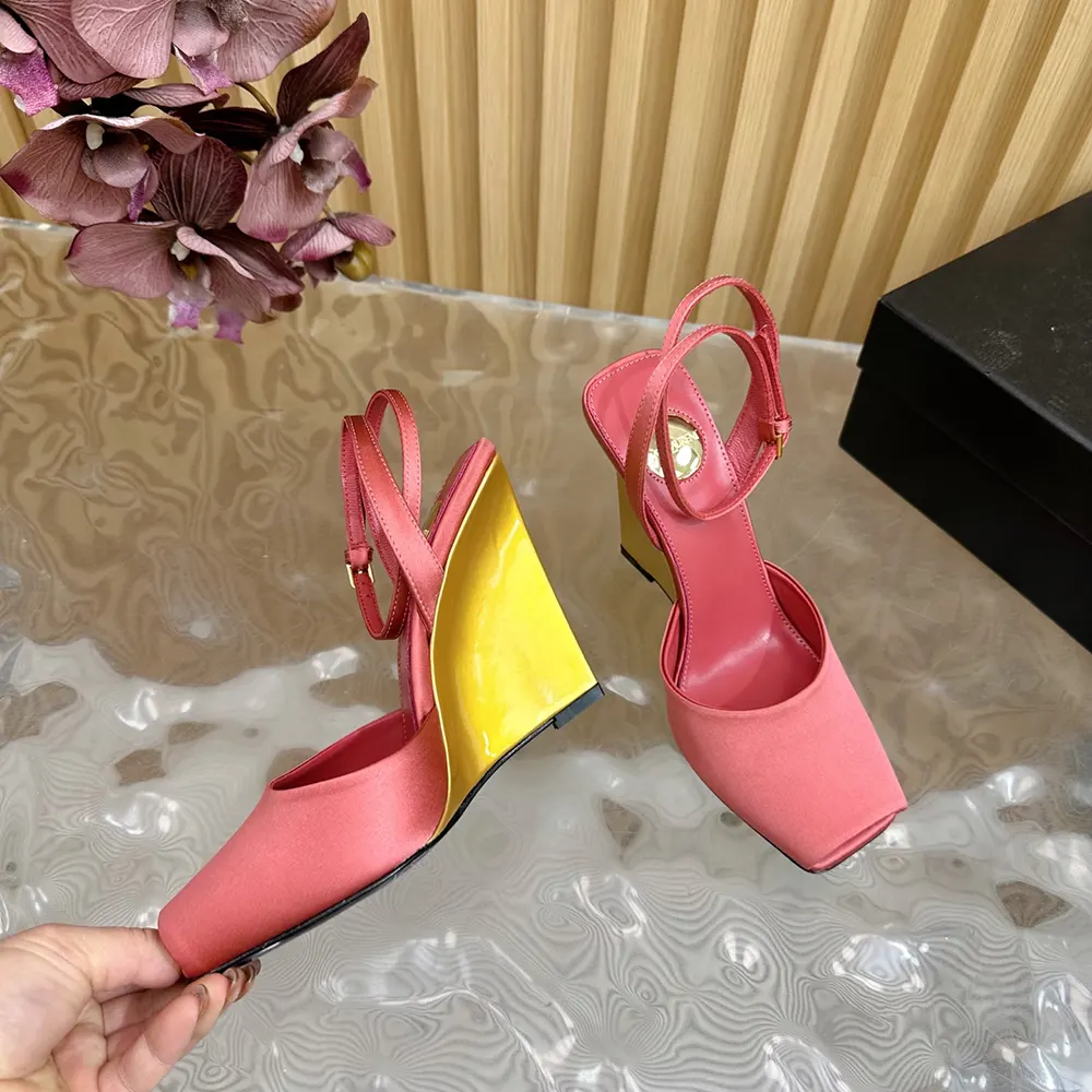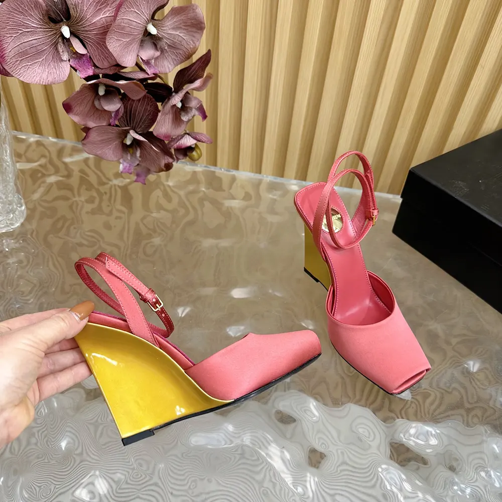 - WEDGE SANDALS WITH A SQUARE OPEN TOE AND CONTRASTING COVERED HEEL,