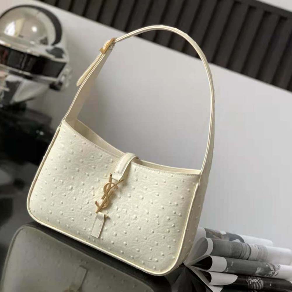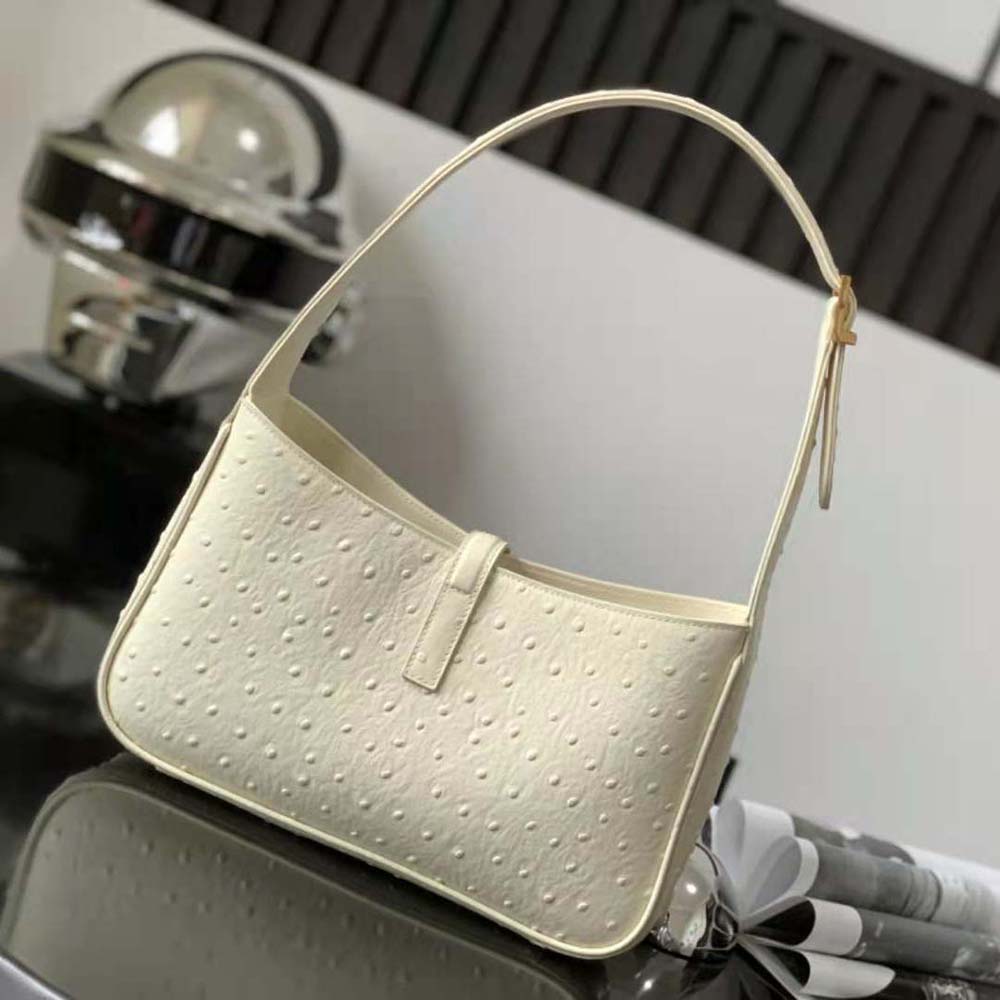 Home Bags & Luggage Shoulder Bags Saint Laurent YSL Replica Women Le 5 A 7 Hobo Bag in Ostrich-White