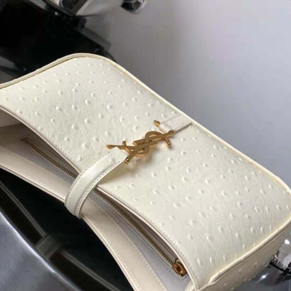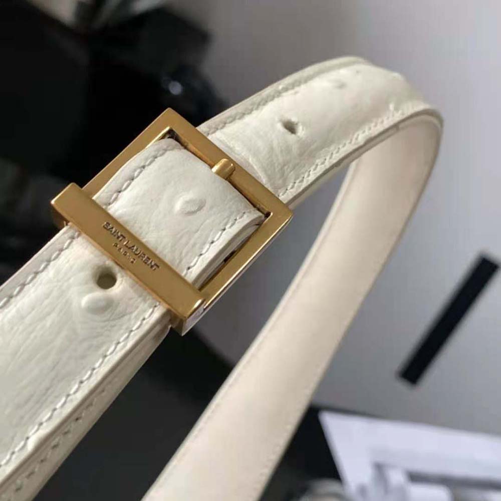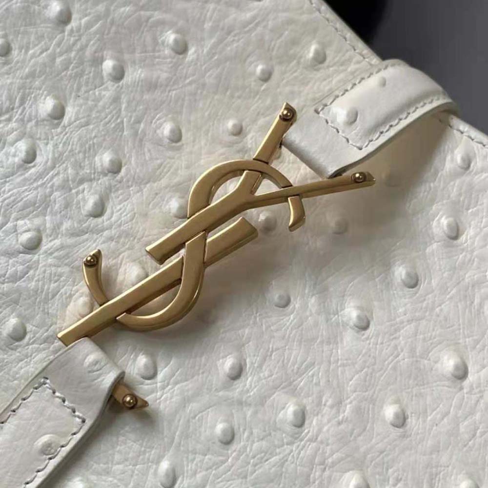 Saint Laurent YSL Women Le 5 A 7 Hobo Bag in Ostrich-White