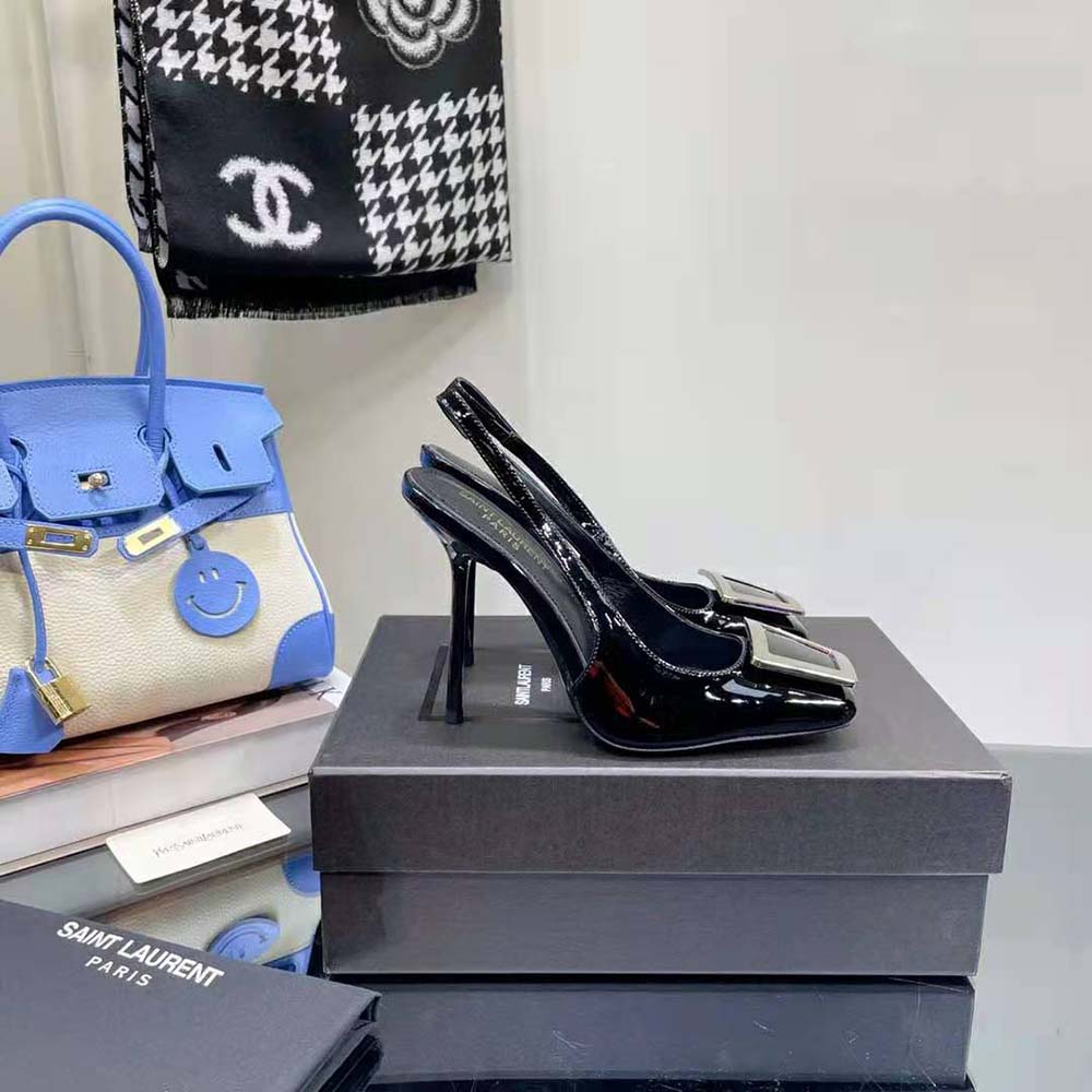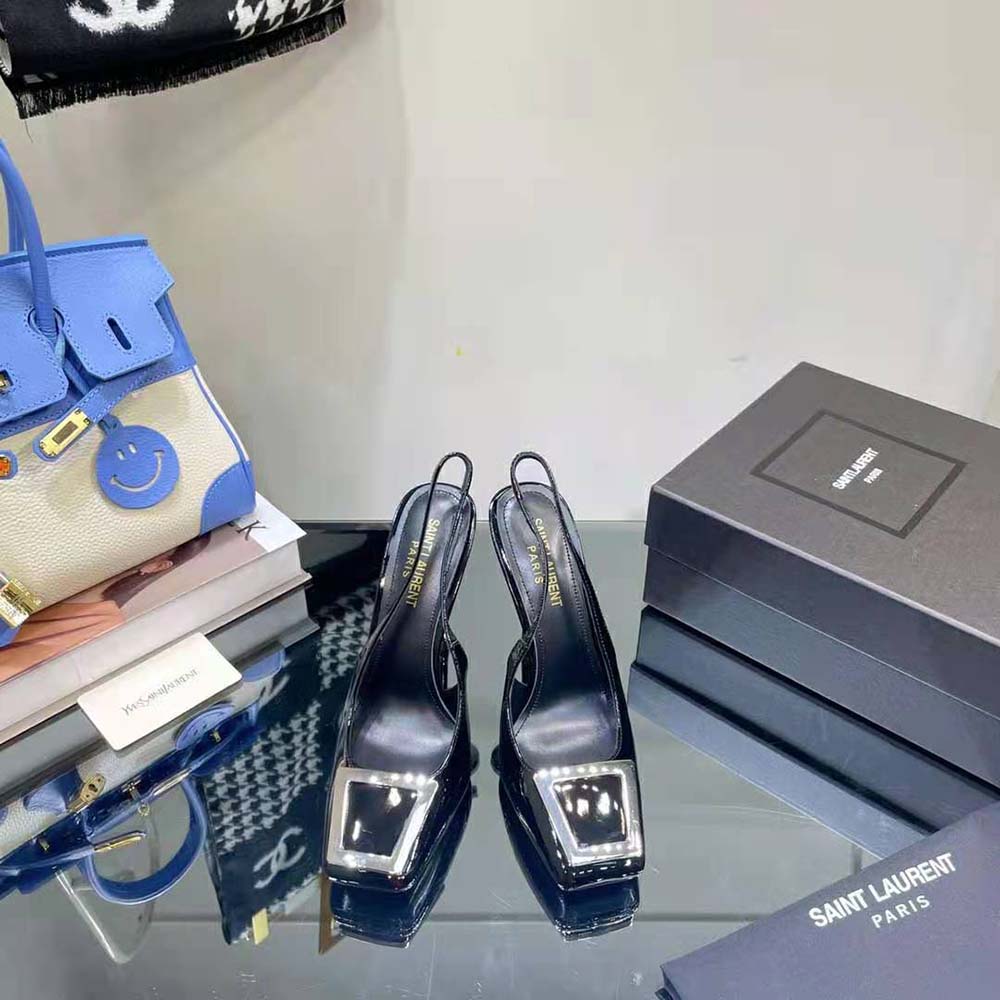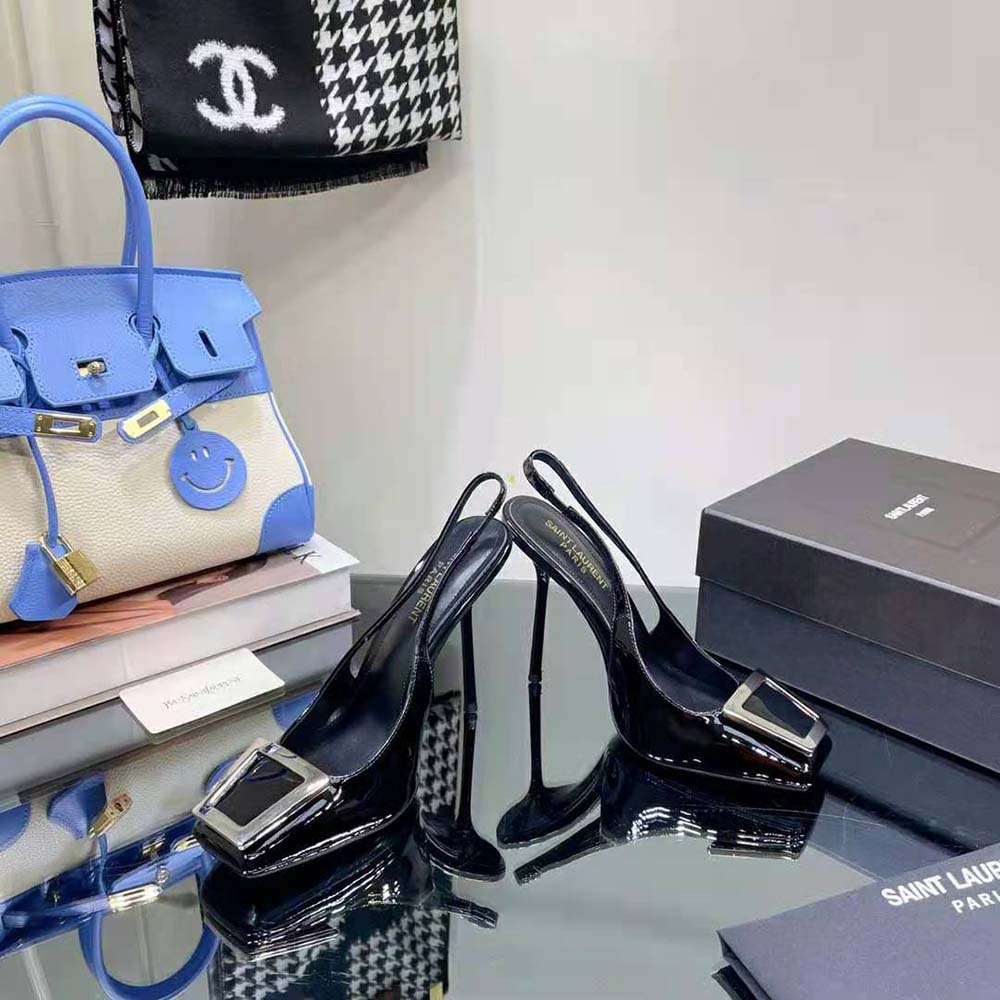 Home Shoes High Heels Saint Laurent YSL AAA-grade Replica Women Maxine Slingback Pumps in Patent Leather