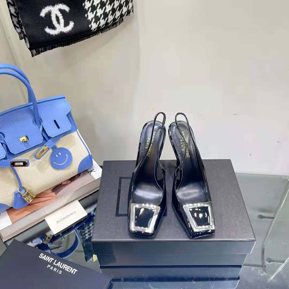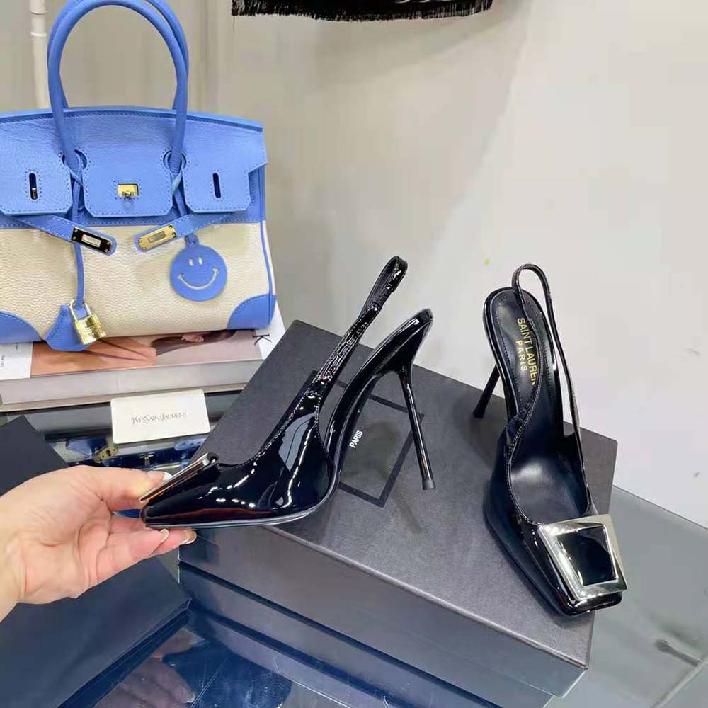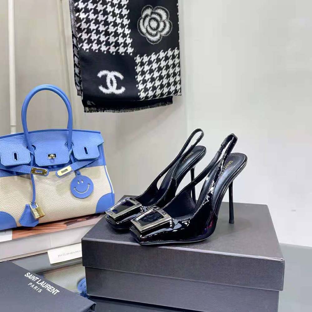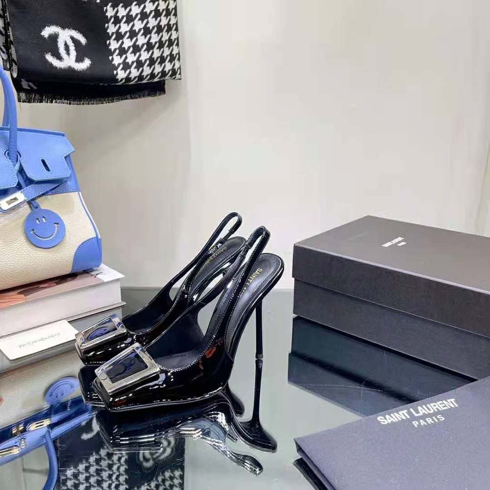 Home Shoes High Heels Saint Laurent YSL AAA-grade Replica Women Maxine Slingback Pumps in Patent Leather