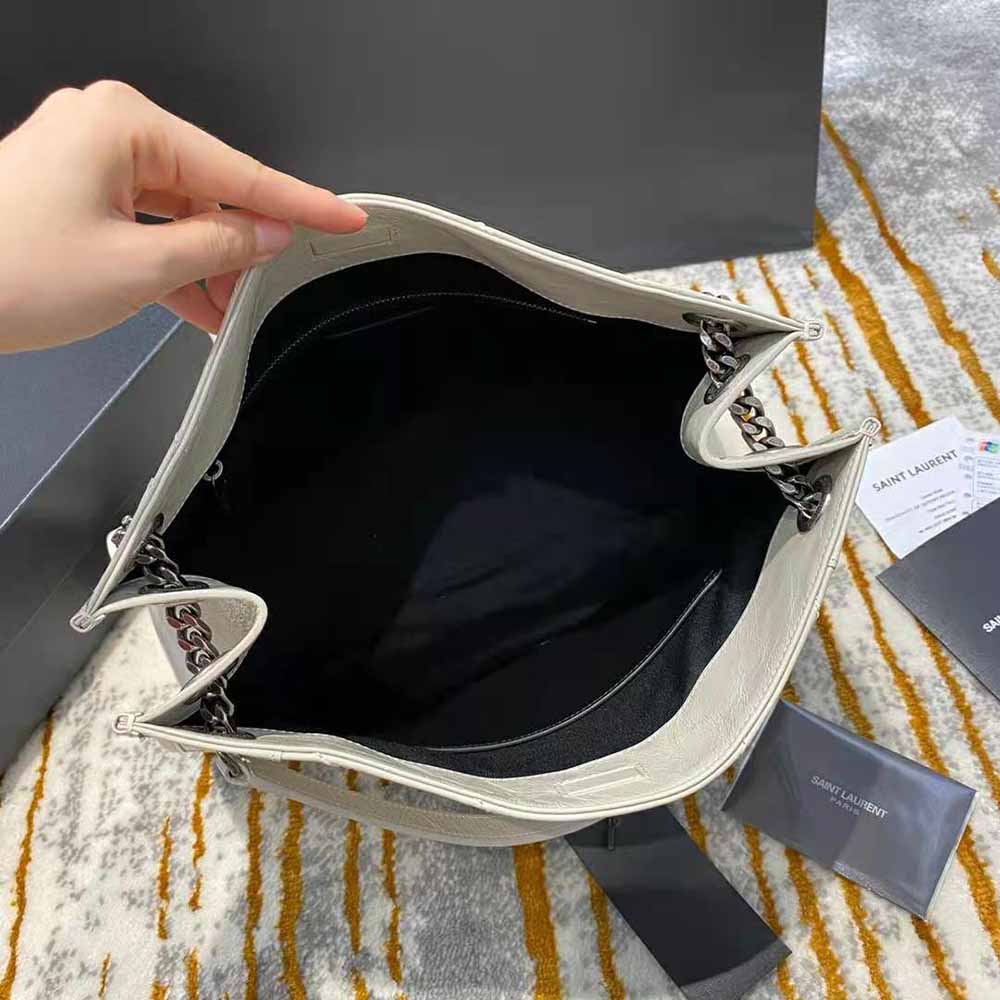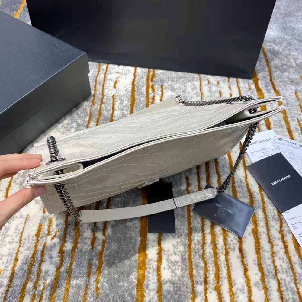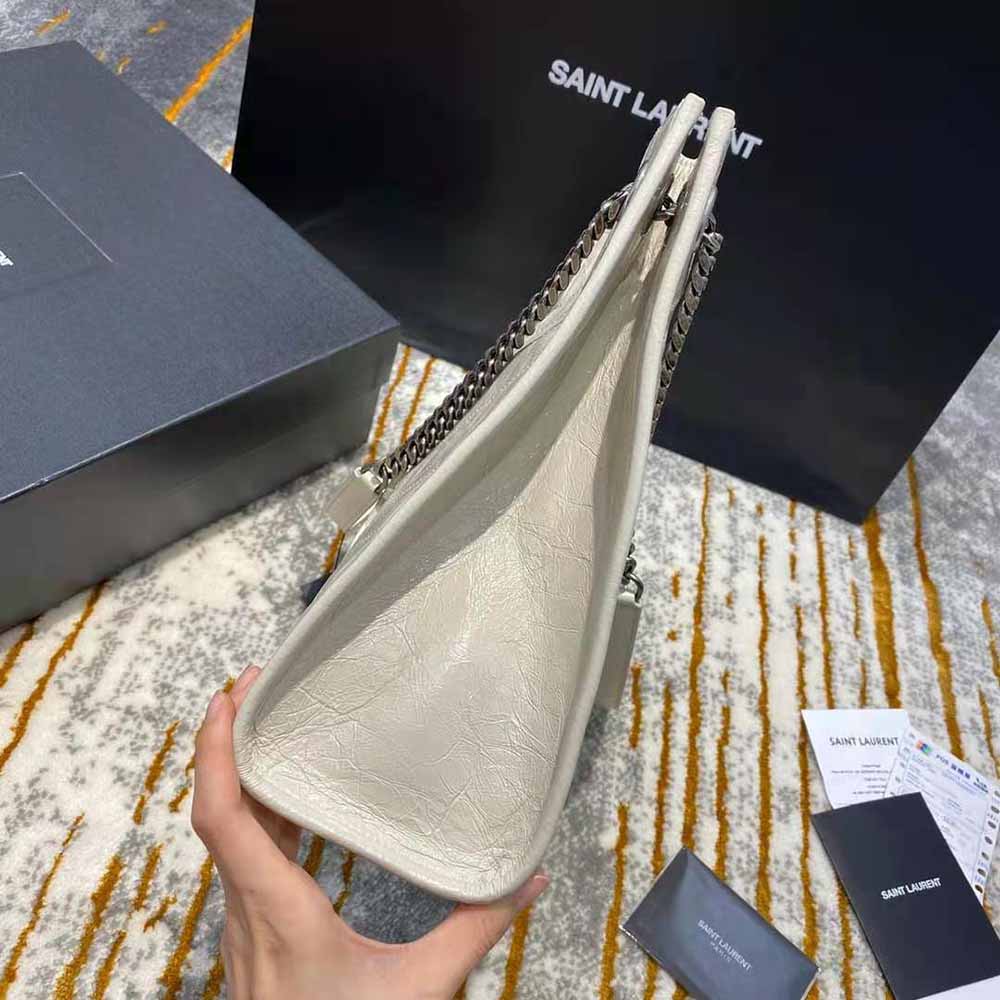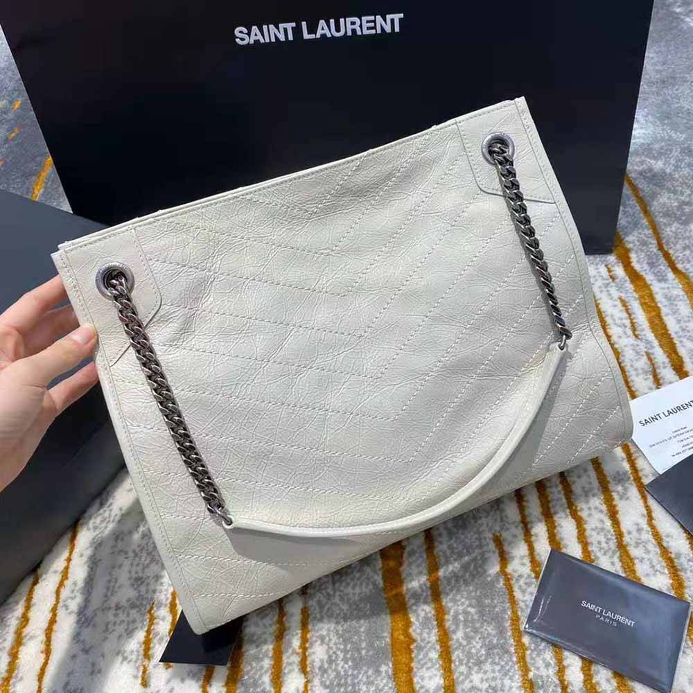 Saint Laurent YSL Women Niki Medium Shopping Bag in Crinkled Vintage Leather-White