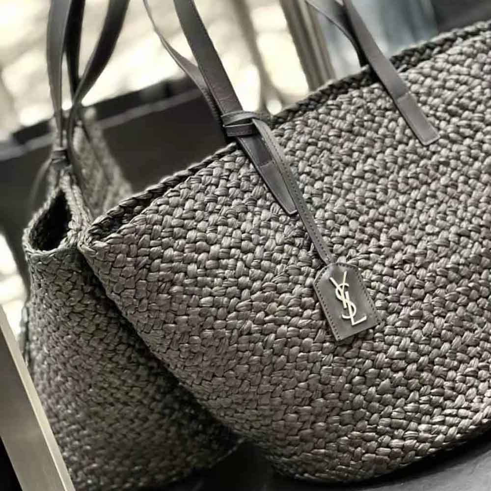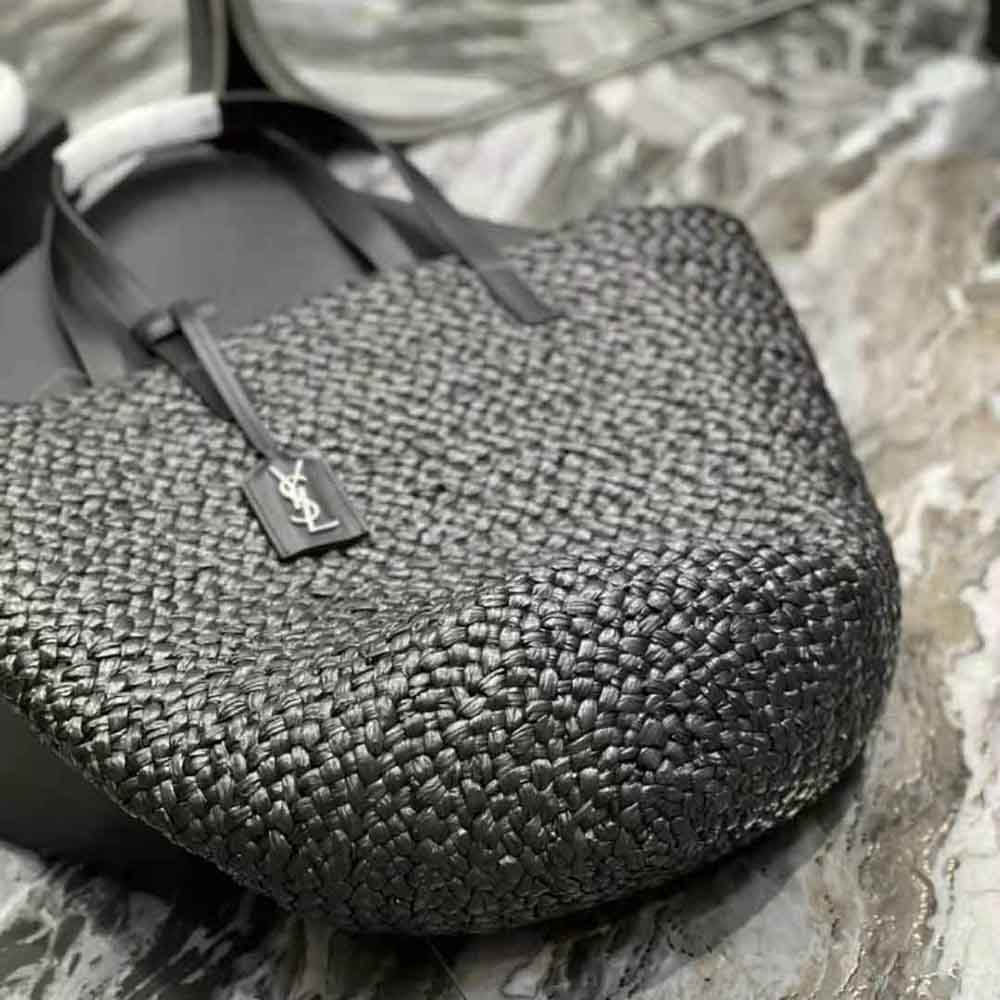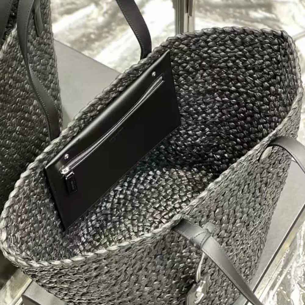 Saint Laurent YSL Women Panier Medium Bag in Raffia-Black