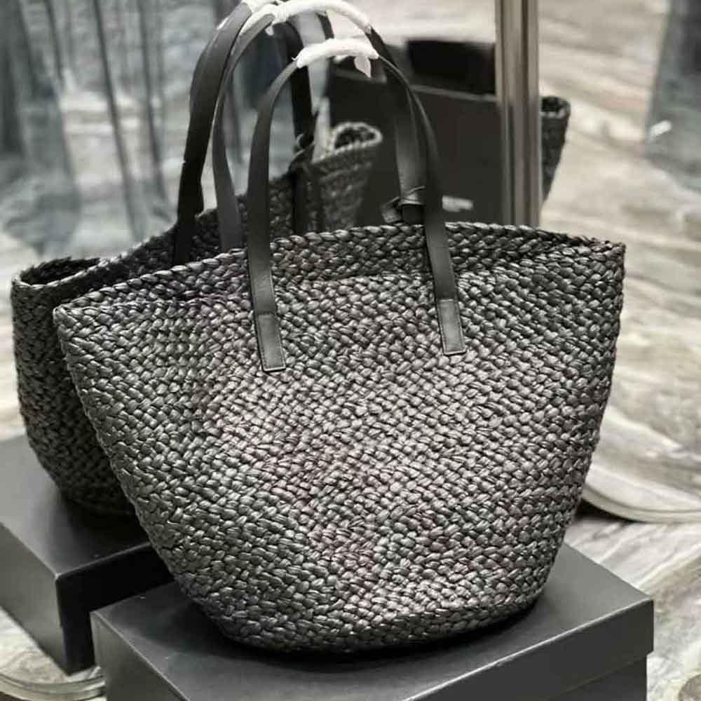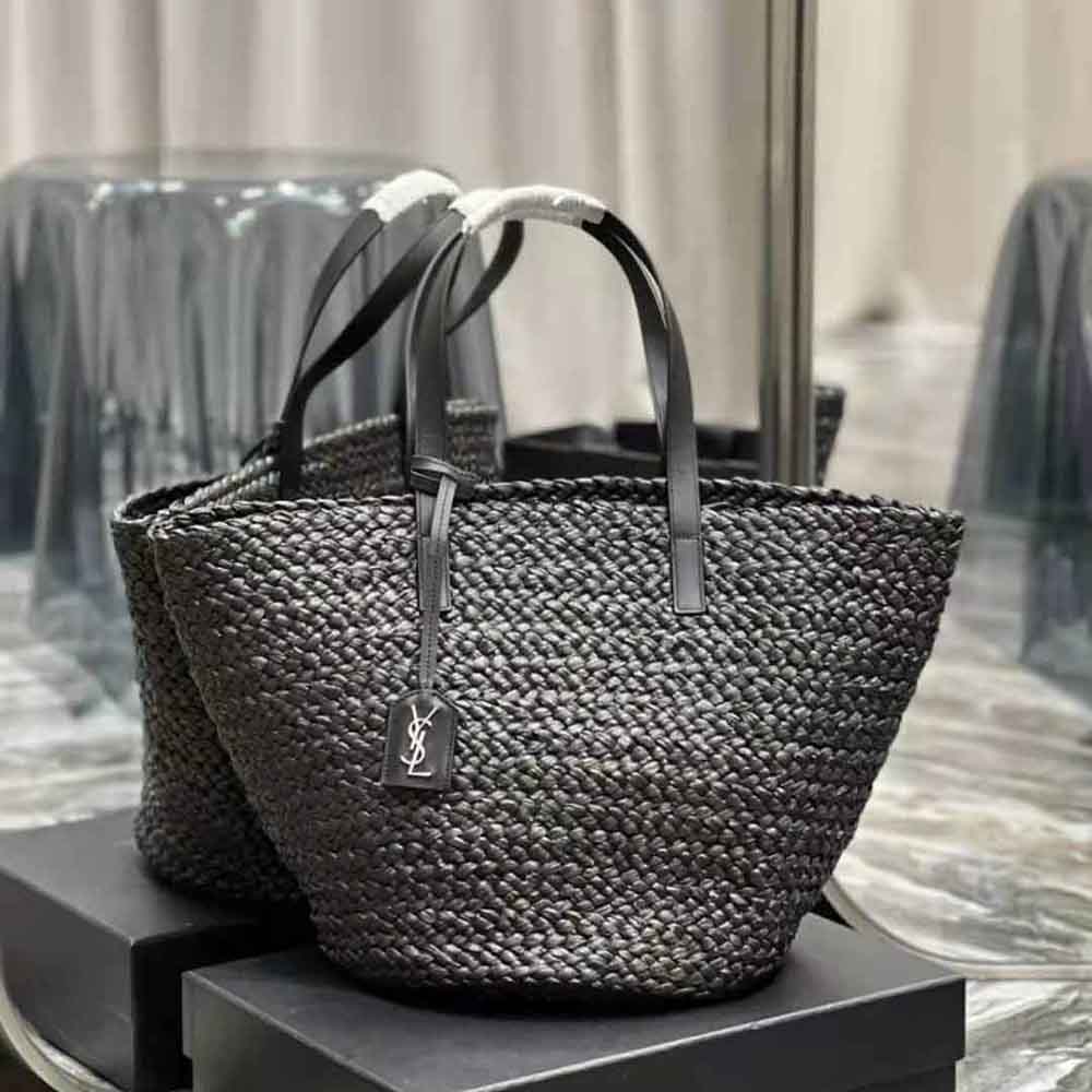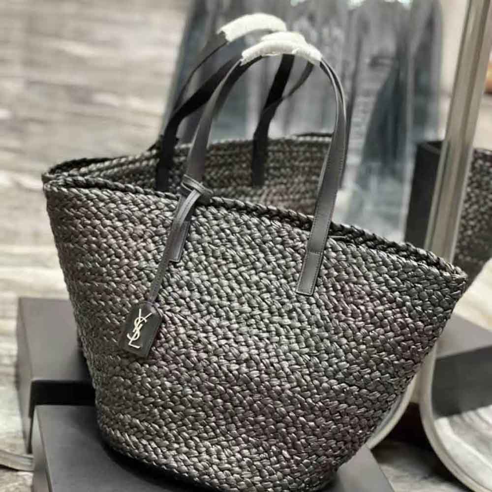 Home Bags & Luggage Handbags Saint Laurent YSL Replica Women Panier Medium Bag in Raffia-Black