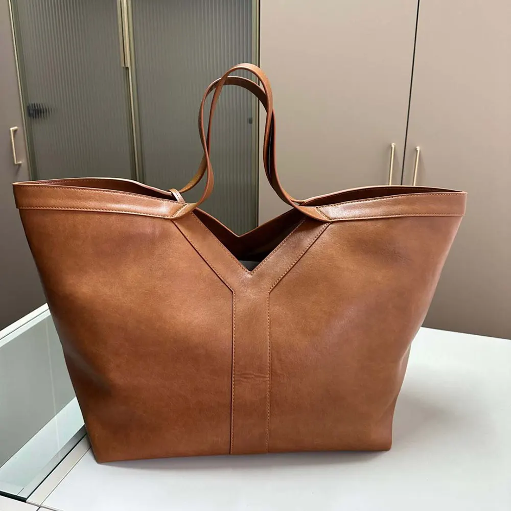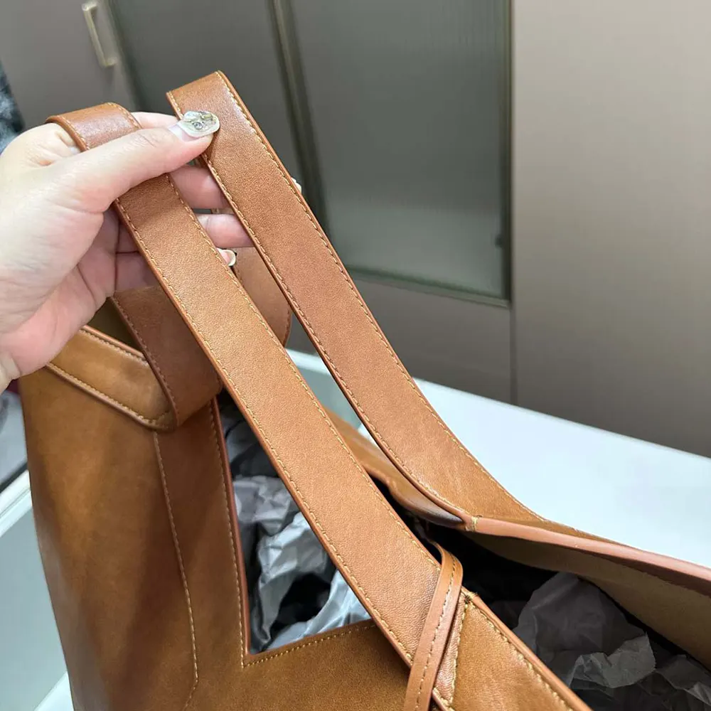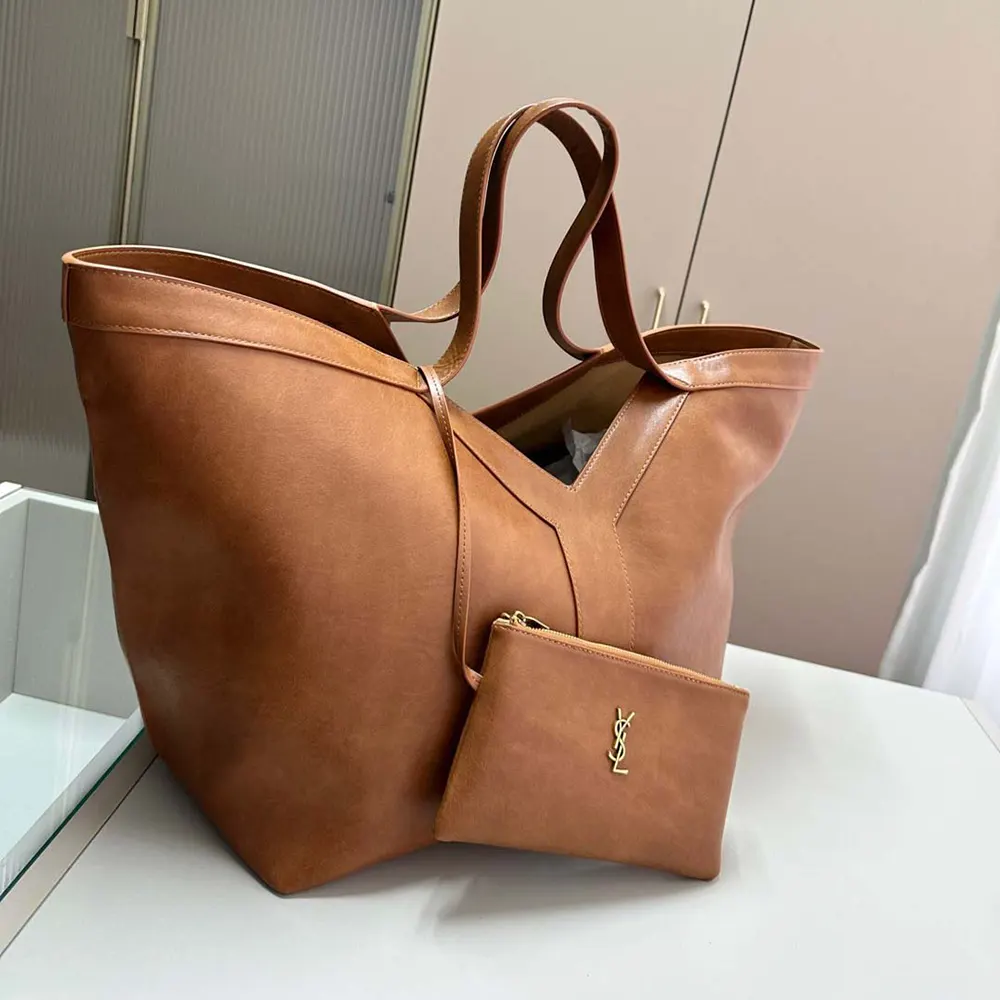 Home Bags & Luggage Handbags Saint Laurent YSL Women Y Tote Dupe in Leather-Brown 817602AAEC36359