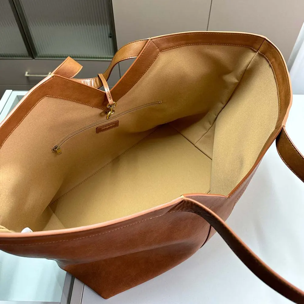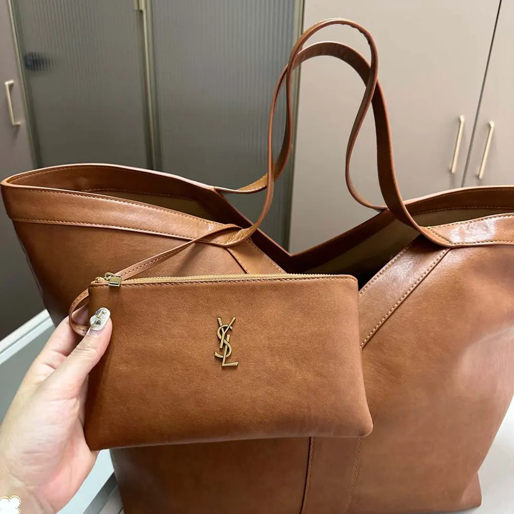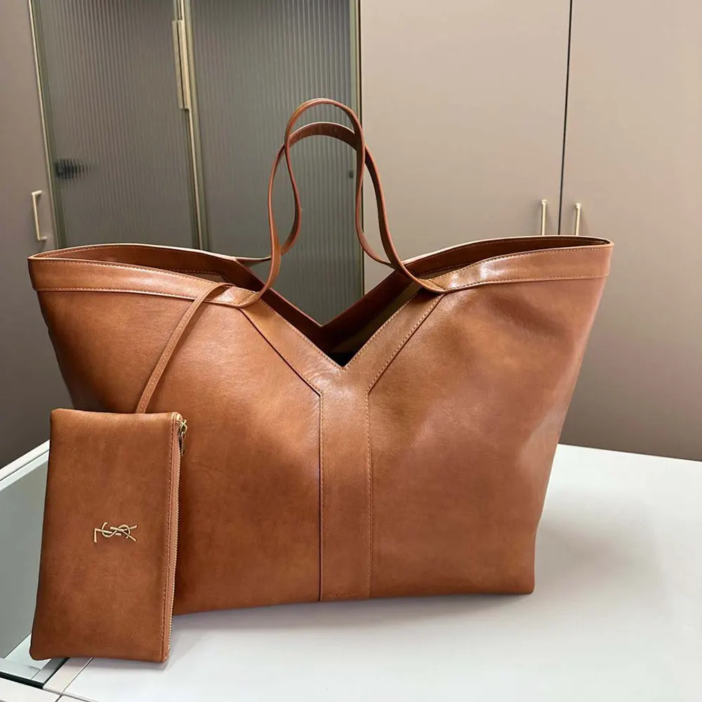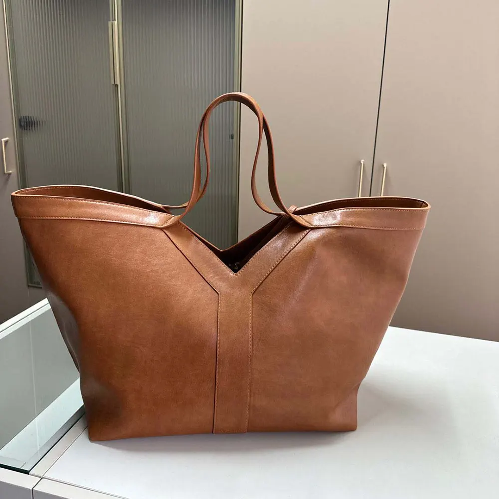 Home Bags & Luggage Handbags Saint Laurent YSL Women Y Tote Dupe in Leather-Brown 817602AAEC36359