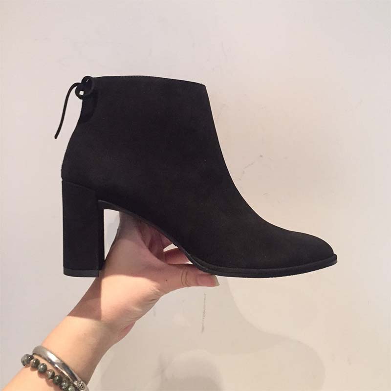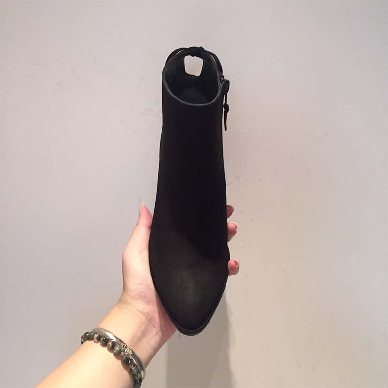 - FEATURESAnkle boot Pointed toe Slim block heel